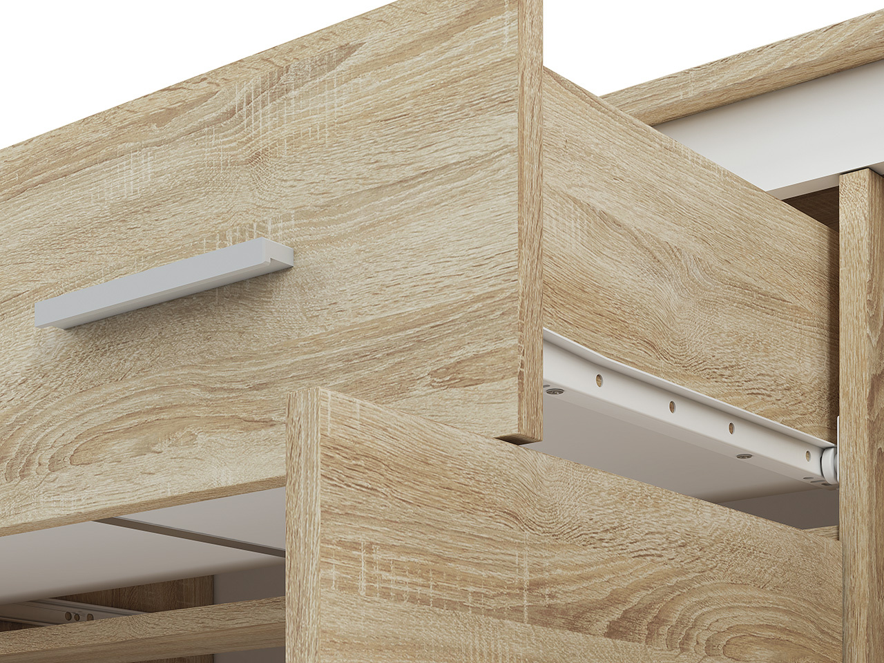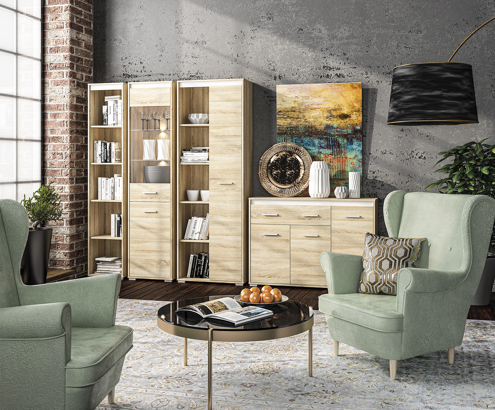 Sektorový nábytek AVO je v barevném provedení: dub sonoma ( korpus + čelní plochy ), dub sonoma + antracit + bílá ( výměnná lišta )