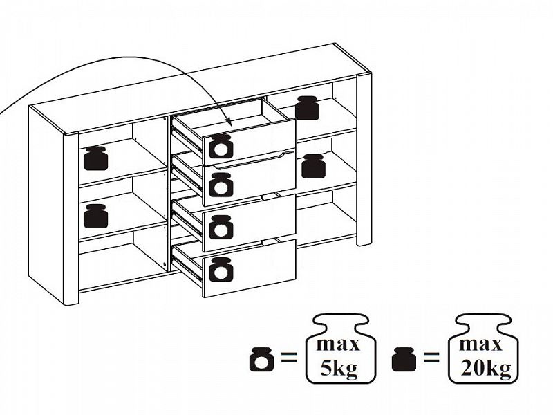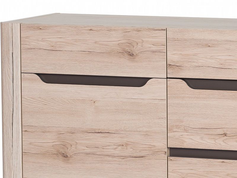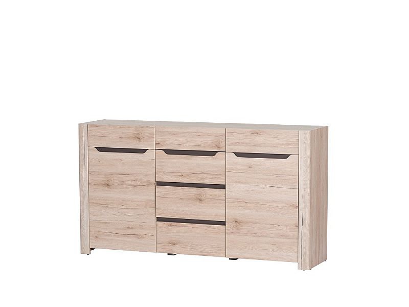 Komoda DESO 10 - po stranách plná dvířka a police, uprostřed čtyři šuplíky