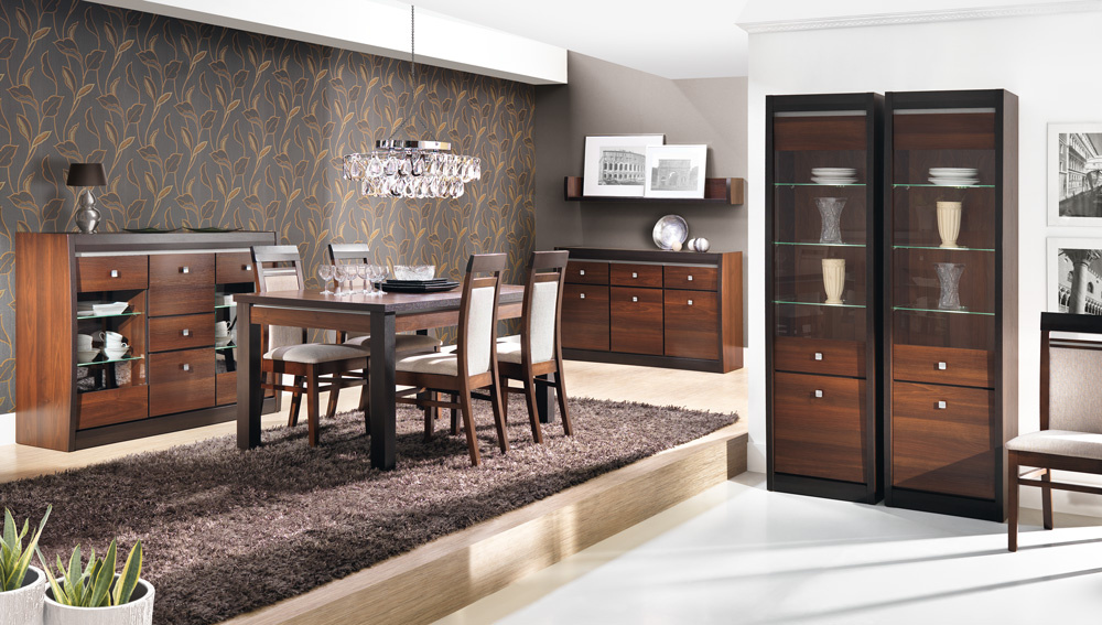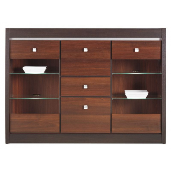 Systém FORREST - luxusní, elegantní, moderní. Je vyráběn z velmi kvalitní laminované MDF o síle 18 mm v barevné kombinaci Dub Miláno / Ořech Tmavý, úchytky jsou z matného chromu. Zajímavým konstukčním prvkem jsou zaoblené vystouplé boční svislé hrany o síle 35 mm jež dodávají komodě masivní vzhled. Komodou FORREST si můžete vybavit obývací pokoj, ložnici nebo jídelnu.