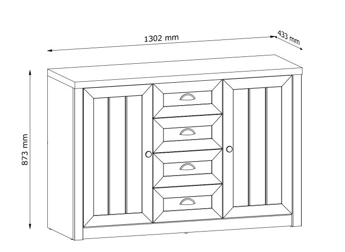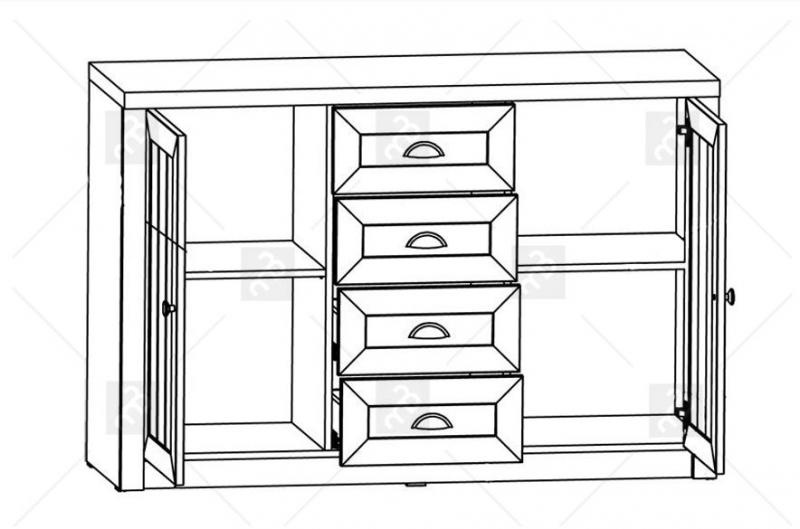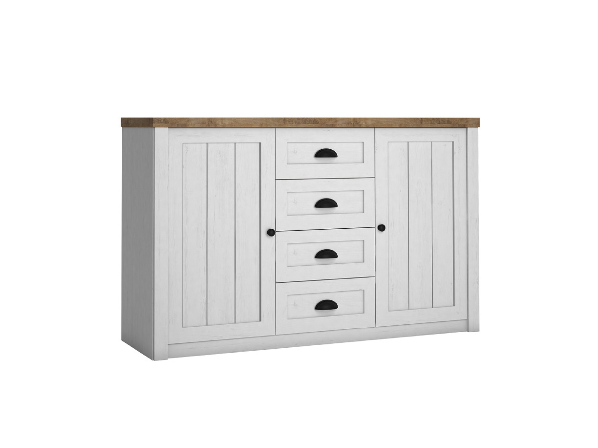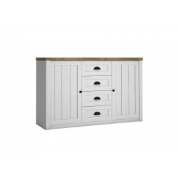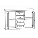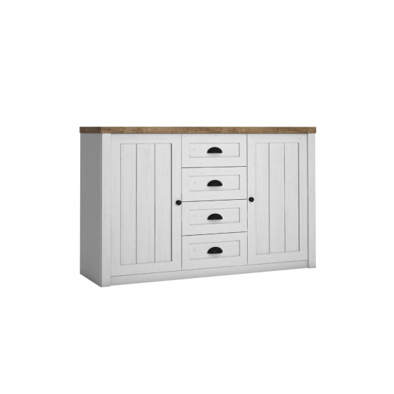 Komoda K4S ze systému PROWANSJA Sosna Andersen - dvou dveřová s plnými dvířky, po jedné polici v každé skříňce a čtyřmi šuplíky uprostřed