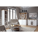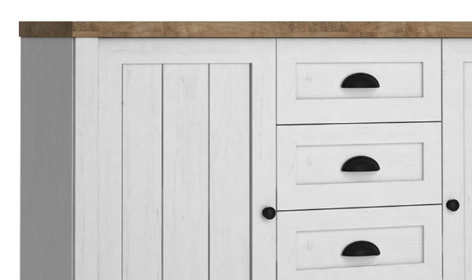 Elegantní kolekce rustikálního nábytku inspirovaná francouzskou Provence. Vybavte sektorem PROWANSJA obývací pokoj, jídelnu nebo ložnici. Dostanete do bytu svěží závan jihu Francie. Nábytek PROWANSJA je vyroben z kvalitního lamina v příjemném barevném provedení Sosna Andersen ( korpus a čelní plochy ) v kombinaci s Dubem Lefkas ( horní deska ). Tato jedinečná kombinace dodá interiéru hravost a svěžest. Nadčasovým prvkem nábytku PROWANSJA jsou kovové úchyty.
