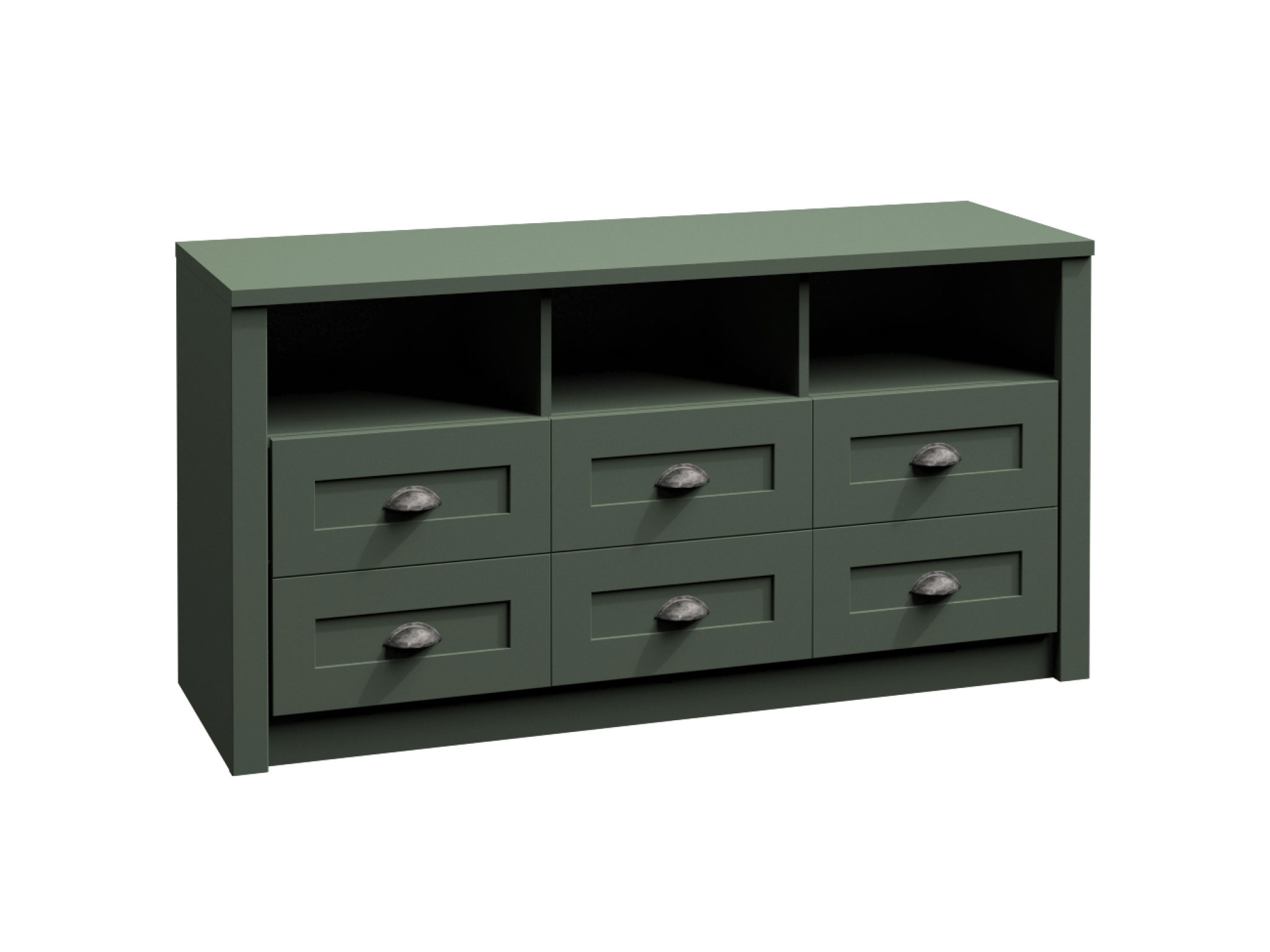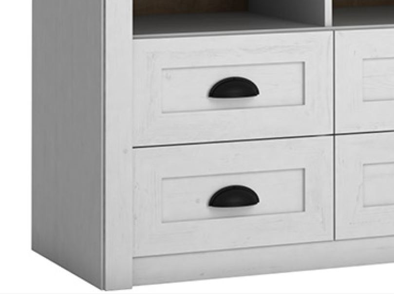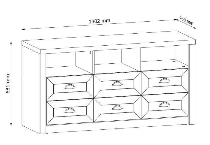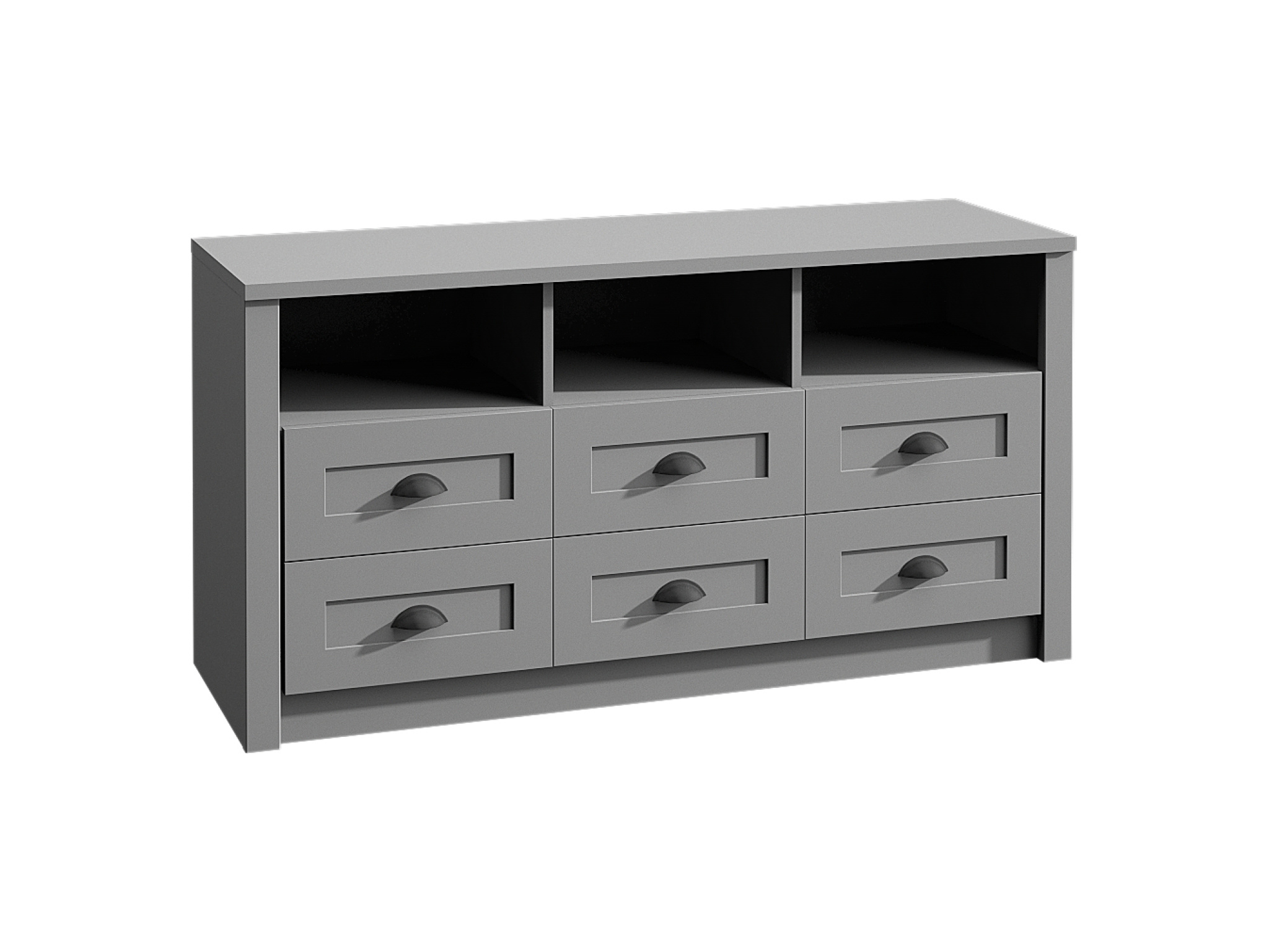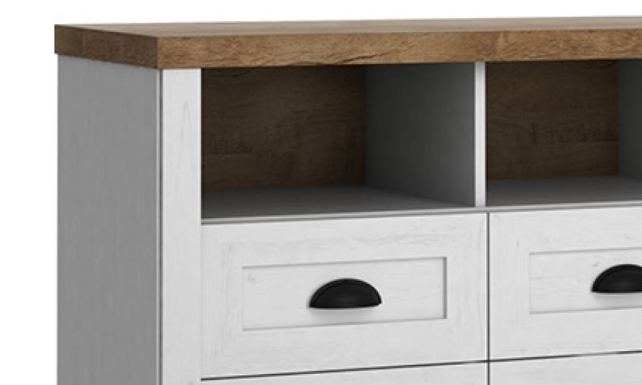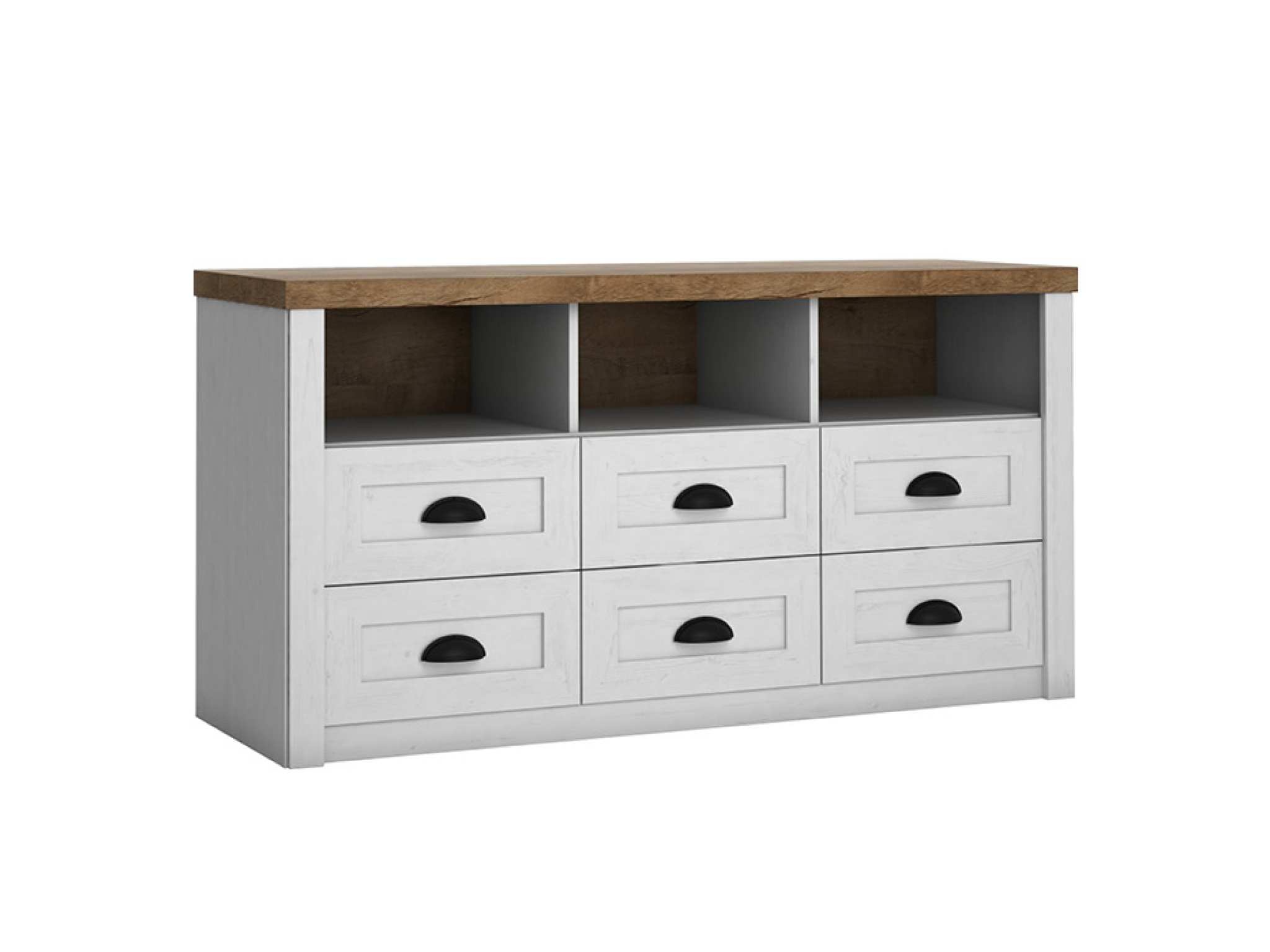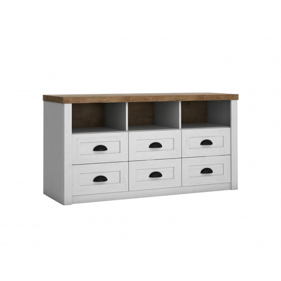 Komoda K6S ze systému PROWANSJA Sosna Andersen - šestišuplíková s dělenou, otevřenou odkládací nikou v horní části