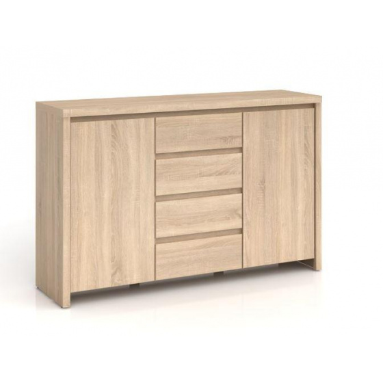 Komoda KOM2D4S systém KASPIAN, dvoudvířková s policemi a čtyřmi šuplíky ve střední části, tvarovaná přední hrana dvířek čela zásuvky umožňuje bezúchytkové otvírání