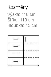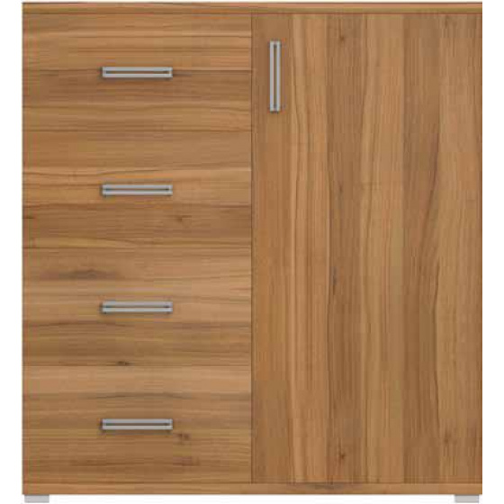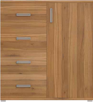 Komoda N - 036 kombinovaná s policemi a šuplíky, plná dvířka. Velký výběr barevného provedení, včetně kombinací barev je samozřejmostí. Výběrem těch správných úchytů dovršíte svůj jedinečný design.