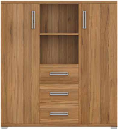 Komoda N - 037 kombinovaná s policemi, šuplíky a otevřenou nikou, plná dvířka. Velký výběr barevného provedení, včetně kombinací barev je samozřejmostí. Výběrem těch správných úchytů dovršíte svůj jedinečný design.