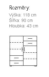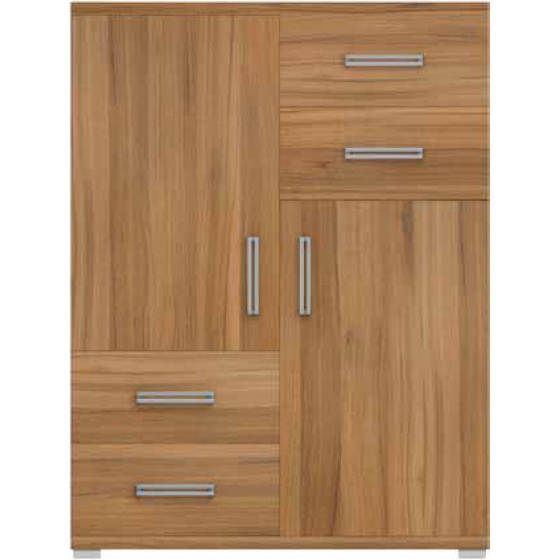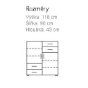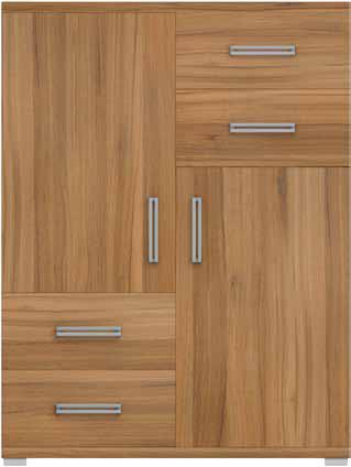 Komoda N - 042 kombinovaná s policemi a šuplíky, plná dvířka. Velký výběr barevného provedení, včetně kombinací barev je samozřejmostí. Výběrem těch správných úchytů dovršíte svůj jedinečný design.