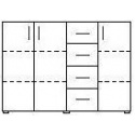 Komoda N 052 - trojdvířková s šuplíky a policemi. Velký výběr barevného provedení, včetně kombinací barev je samozřejmostí. Výběrem těch správných úchytů dovršíte svůj jedinečný design.