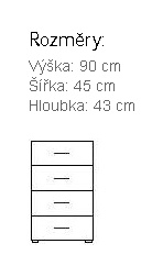 Komoda N - 074 čtyřšuplíková. Velký výběr barevného provedení, včetně kombinací barev je samozřejmostí. Výběrem těch správných úchytů dovršíte svůj jedinečný design.