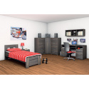 Základem nábytku jsou kvalitní materiály od renomovaných českých výrobců zaručujících hygienickou nezávadnost a vysokou odolnost po celou dobu jeho užívaní. Poctivý kus nábytku má zesílený horní i spodní díl pro větší stabilitu, pevnost a delší užívání. Vše má plnou výbavu: dotah dveří, kartáče proti prachu, zásuvky s plnovýsuvem a dotahem, panty s tlumením.Vše je vyrobeno z plošného materiálu LTD 18 a 28 mm, který je opatřen ABS hranami, kvalitními závěsy klasických i posuvných dveří. Pojezdové kolejnice a vozíky dveří jsou z odolného materiálu, který zajistí dlouhé a bezproblémové užívání. Tento sektorový nábytek vyniká vysokou variabilitou. Výběrem jednotlivých prvků máte originální obývací pokoj, útulný studentský nebo dětský pokoj, praktickou kancelář i předsíň.