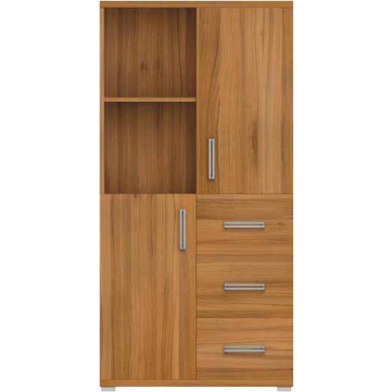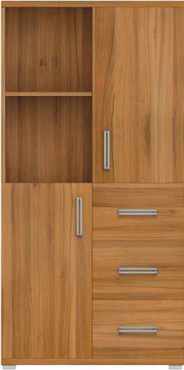 Komoda N - 026 kombinovaná, s policemi, šuplíky i otevřeným úložným prostorem. Velký výběr barevného provedení, včetně kombinací barev je samozřejmostí. Výběrem těch správných úchytů dovršíte svůj jedinečný design.
