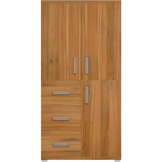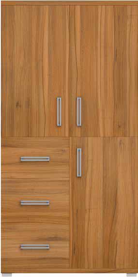 Komoda N - 027 kombinovaná, s policemi a šuplíky, plná dvířka. Velký výběr barevného provedení, včetně kombinací barev je samozřejmostí. Výběrem těch správných úchytů dovršíte svůj jedinečný design.