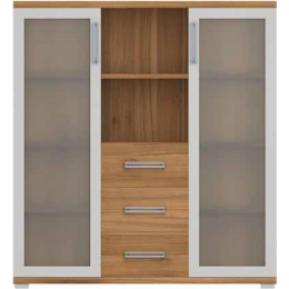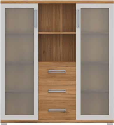 Prosklená komoda N - 038 je vybavená policemi, šuplíky a prosklenými dvířky po stranách - hliníkový rám, středně mléčné sklo. Velký výběr barevného provedení, včetně kombinací barev je samozřejmostí. Výběrem těch správných úchytů dovršíte svůj jedinečný design.