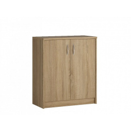 Praktická, jednoduchá komoda Šárka dvoudvéřová + dvě police. Nábytek je vyrobený z kvalitního lamina, je odolný proti poškrábání, vlhkosti a vysokým teplotám.