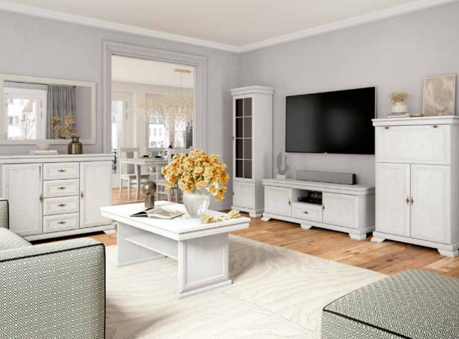 Sektorem KORA můžete zařídit celý dům. Od haly přes obývací pokoj, jídelnu, pracovnu až po ložnici. K dispozici máte 28 jednotlivých prvků ze systému KORA. Rustikální vzhled je docílen profilovanými čelními plochami, ozdobnými lištami a nožičkami, to vše umocněno originálním kovovým kováním.  Systémový nábytek KORA se vyrábí z kvalitní MDF v barevném provedení Samoa King nebo Sosna Andersen.