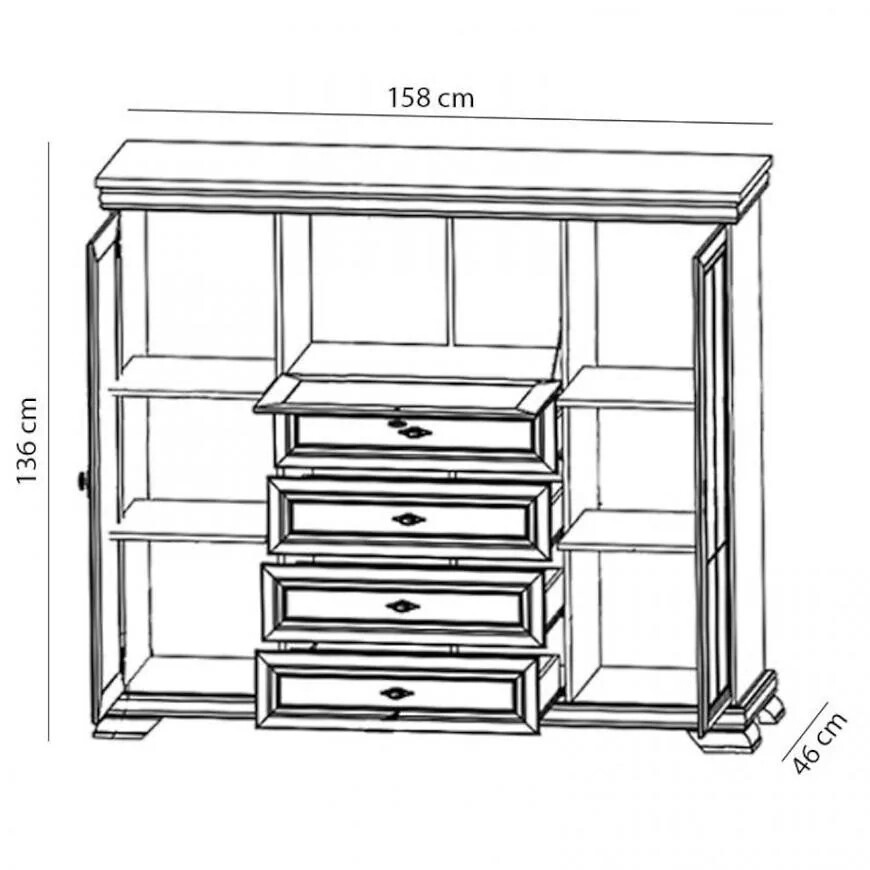 Rozměry: š. 158 cm / v. 136 cm / hl. 46 cm