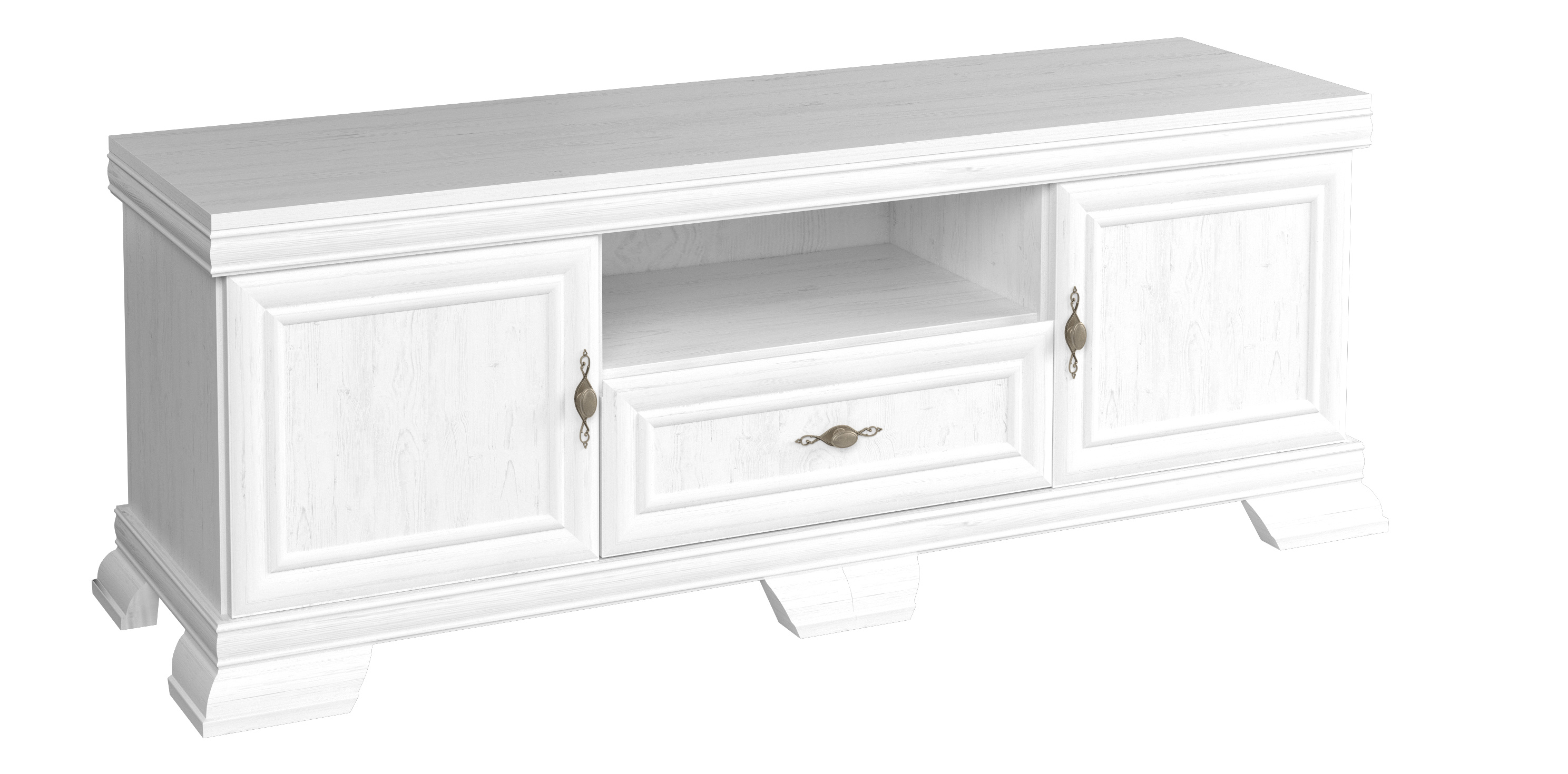 Televizní stolek KRT2 - plná dvířka po stranách, uprostřed šuplík a otevřená odkládací nika
