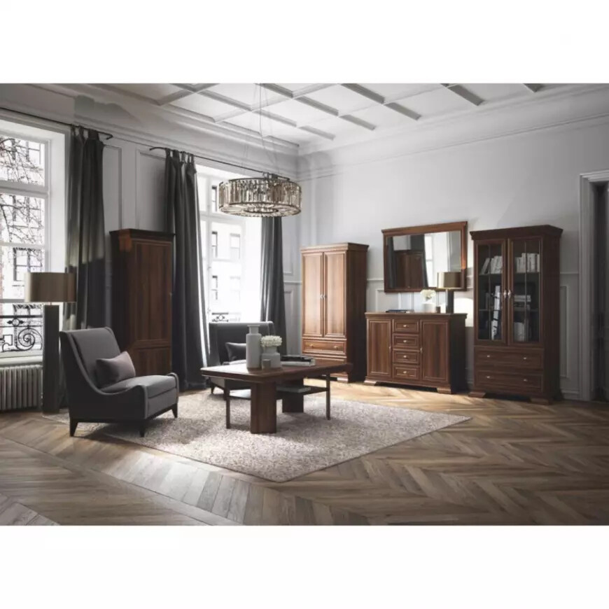 Sektorem KORA můžete zařídit celý dům. Od haly přes obývací pokoj, jídelnu, pracovnu až po ložnici. K dispozici máte 28 jednotlivých prvků ze systému KORA. Rustikální vzhled je docílen profilovanými čelními plochami, ozdobnými lištami a nožičkami, to vše umocněno originálním kovovým kováním. Systémový nábytek KORA se vyrábí z kvalitní MDF v barevném provedení Samoa King nebo Sosna Andersen.