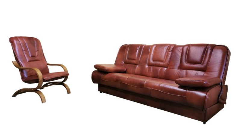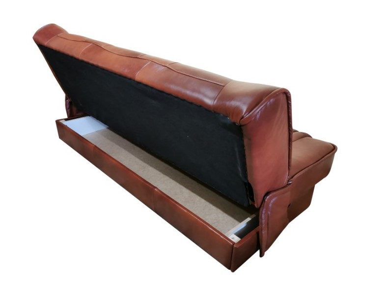 Stylová a luxusní je pohovka INDI se dvěma křesly. Jde o sestavu, která je vyrobená v pravé kůži v hnědém tónu S42/D3 rustik. Pohovka i křesla jdou dekoračně prošité, což dodává na luxusu a pevnosti celému nábytku. Dozajista oceníte úložný prostor, který v sobě pohovka ukrývá. Jednoduše se do něj dostanete. Zároveň je možné pohovku využít k přespání. Rozklad je snadný díky clic clac systému. Po rozložení vznikne spací plocha o rozměrech 120 x 200 cm. Výplň sedáku tvoří vlnitá pružina a PUR pěna. Výška sedáku 42 cm, hloubka sedáku 53 cm.