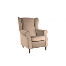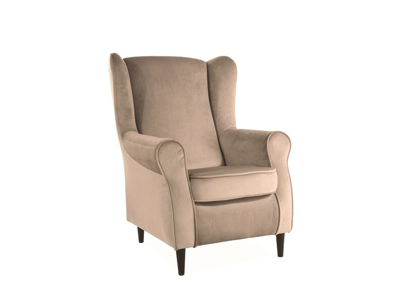 Křeslo FELICIA dodá do Vašeho domova vznešenost, která nevyjde nikdy z módy. Ušák je v béžovém barevném provedení. Látka Bluvel 28 ( látka snadno čistitelná, velmi odolná proti otěru a žmolkování - se sametovým vzhled ).