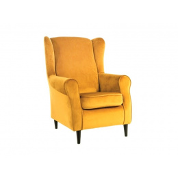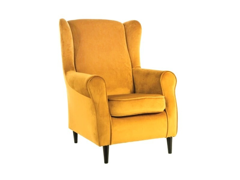 Křeslo FELICIA dodá do Vašeho domova vznešenost, která nevyjde nikdy z módy. Ušák je v odstínu hořčice. Látka Bluvel 68 ( látka snadno čistitelná, velmi odolná proti otěru a žmolkování - se sametovým vzhled ).