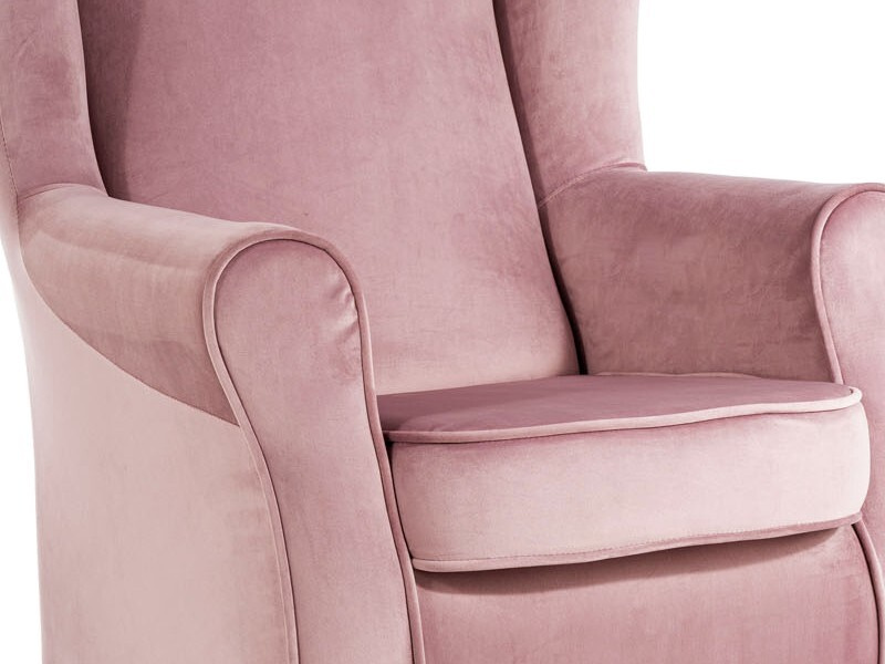 Křeslo FELICIA dodá do Vašeho domova vznešenost, která nevyjde nikdy z módy. Ušák je v starorůžovém odstínu. Látka Bluvel 52 ( látka snadno čistitelná, velmi odolná proti otěru a žmolkování - se sametovým vzhled ).