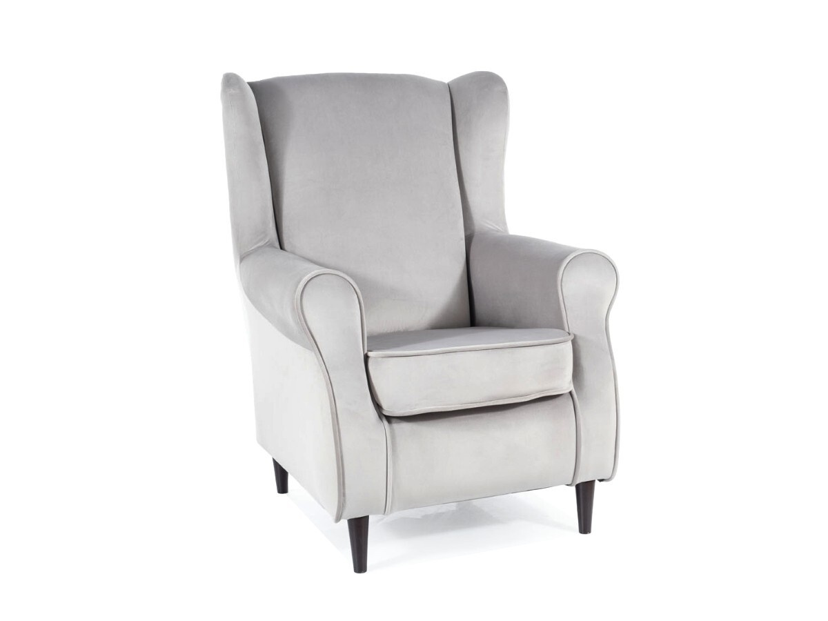 Křeslo FELICIA dodá do Vašeho domova vznešenost, která nevyjde nikdy z módy. Ušák je ve světle šedém odstínu. Látka Bluvel 03 ( látka snadno čistitelná, velmi odolná proti otěru a žmolkování - se sametovým vzhled ).