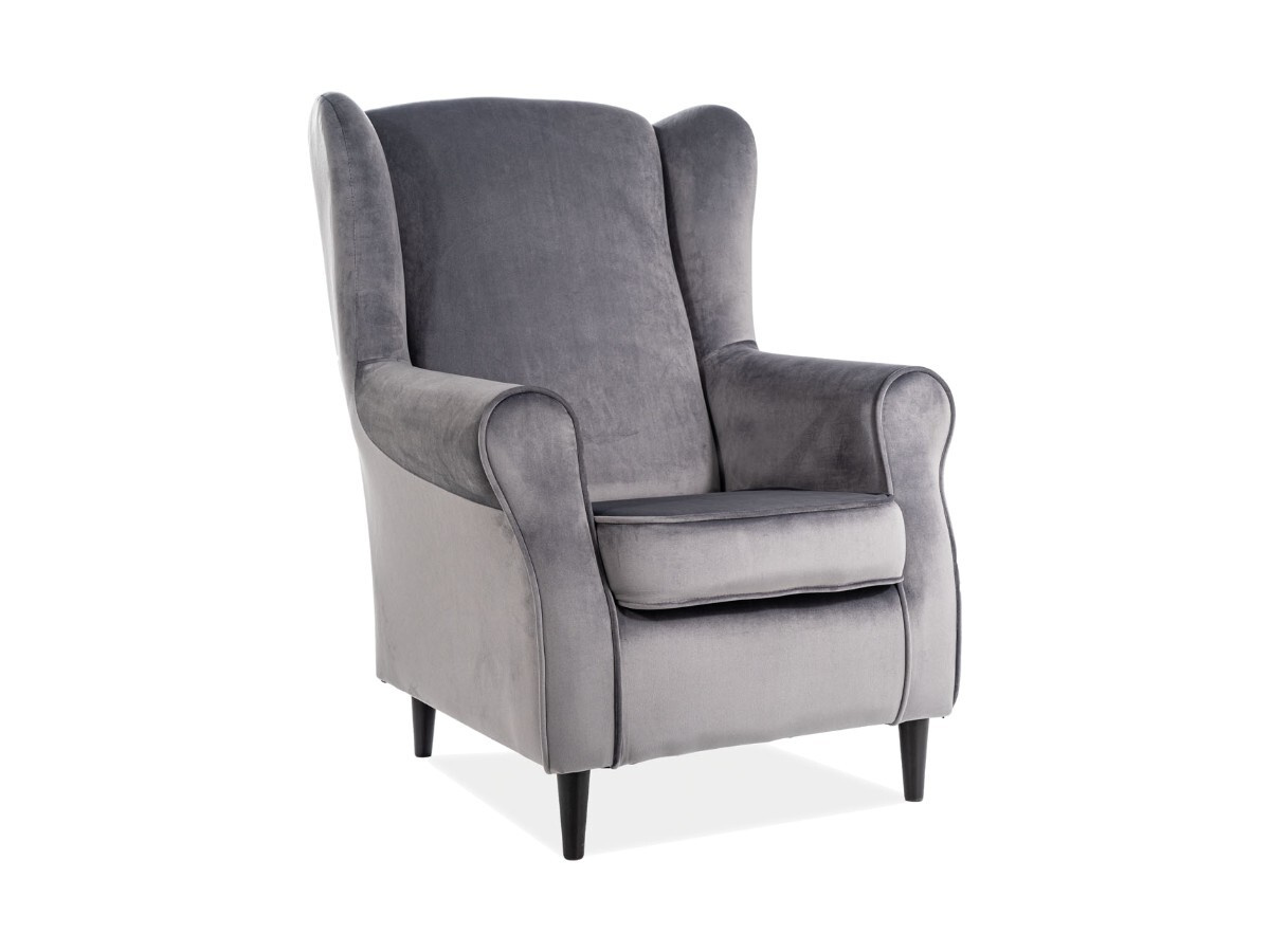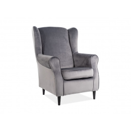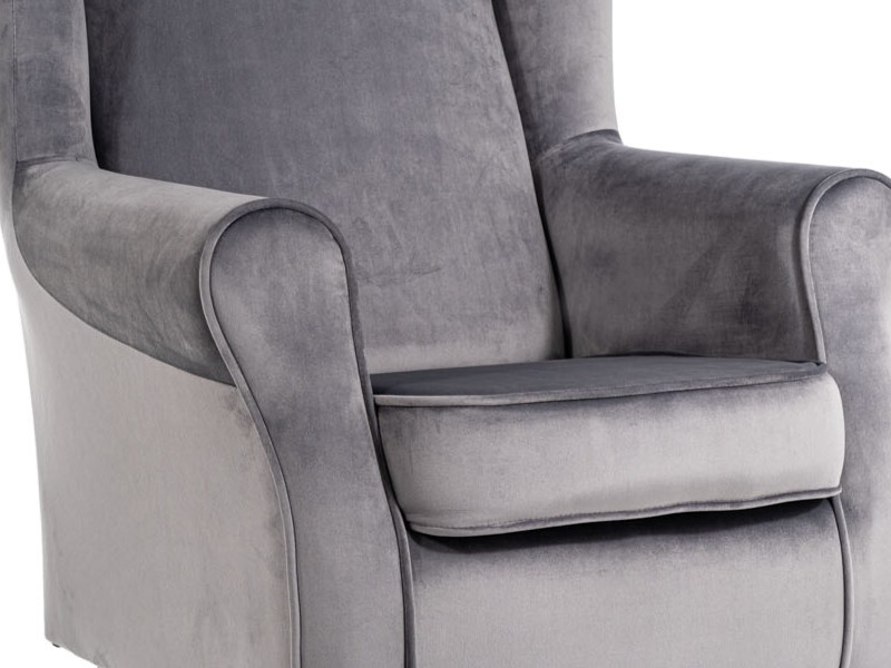 Křeslo FELICIA dodá do Vašeho domova vznešenost, která nevyjde nikdy z módy. Ušák je v tmavě šedémbarevném provedení. Látka Bluvel 14 ( látka snadno čistitelná, velmi odolná proti otěru a žmolkování - se sametovým vzhled ).
