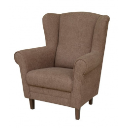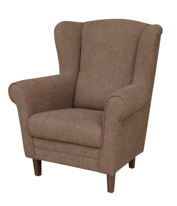 MATIAS je celočalouněné křeslo ušák do obývacího pokoje. Elegantní křeslo MATIAS v klasickém designu, oživí každý interiér a poskytne skvělý komfort odpočinku. Křeslo je totiž široké 87 cm. Výška opěráku je dost vysoká na pohodlné opření hlavy. Křeslo je čalouněno kvalitní potahovou látkou SS 07 čokoládová s povrchovou úpravou Easy Clean - snadno se čistí, je vodoodpudivá a otěruvzdorná. Nožičky jsou z masivního bukového dřeva moření tmavý ořech.