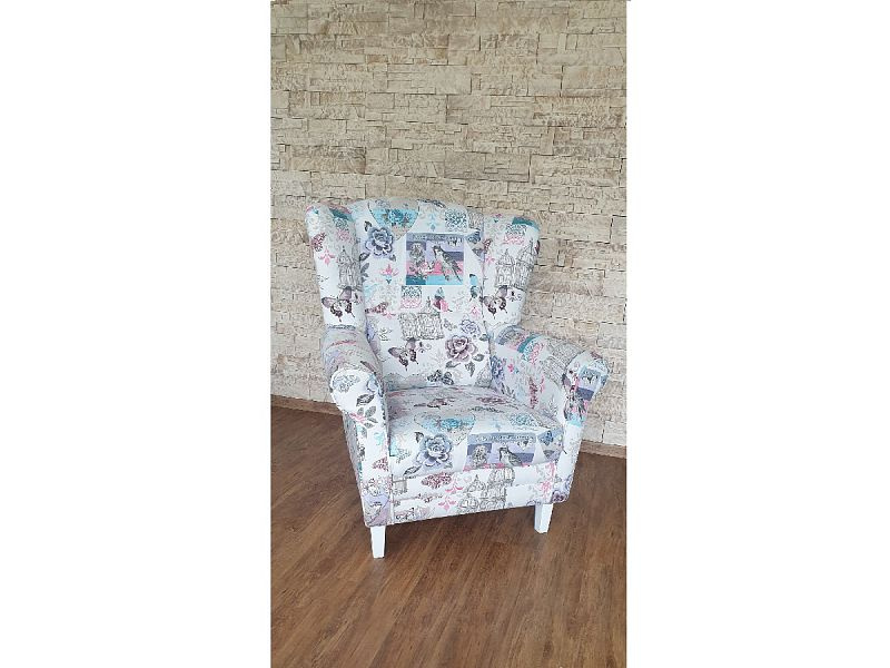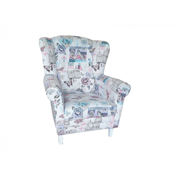 MATIAS je celočalouněné křeslo ušák do obývacího pokoje. Elegantní křeslo MATIAS v klasickém designu, oživí každý interiér a poskytne skvělý komfort odpočinku. Křeslo je totiž široké 87 cm. Výška opěráku je dost vysoká na pohodlné opření hlavy. Křeslo je čalouněno kvalitní potahovou látkou DV 15 - provance vzor. Nožičky jsou z masivního bukového dřeva moření bílé.