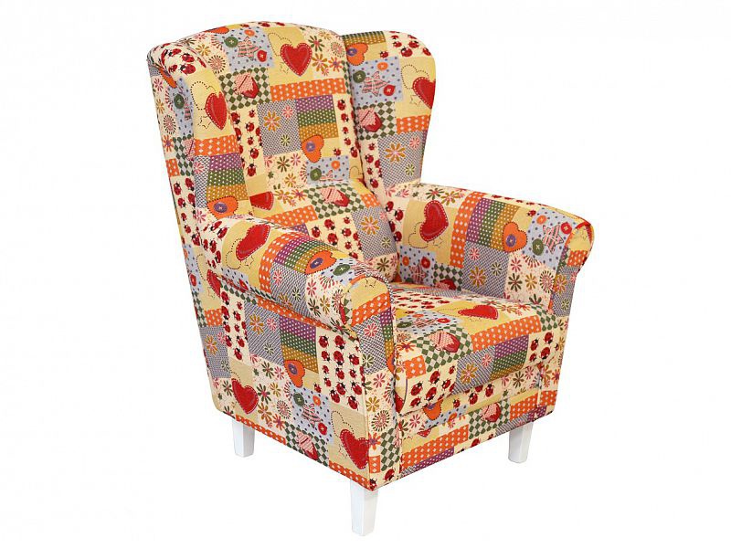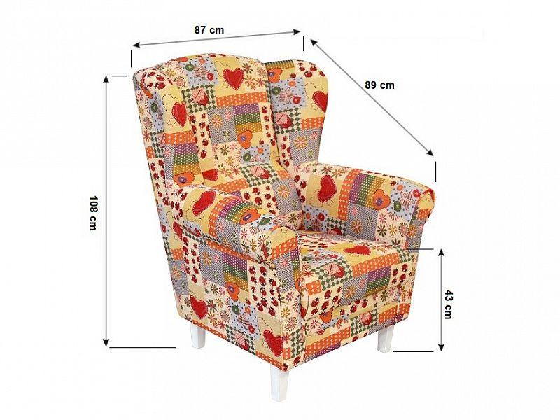 MATIAS je celočalouněné křeslo ušák do obývacího pokoje. Elegantní křeslo MATIAS v klasickém designu, oživí každý interiér a poskytne skvělý komfort odpočinku. Křeslo je totiž široké 87 cm. Výška opěráku je dost vysoká na pohodlné opření hlavy. Křeslo je čalouněno kvalitní potahovou látkou DV 09 - srdce vzor. Nožičky jsou z masivního bukového dřeva moření bílé.