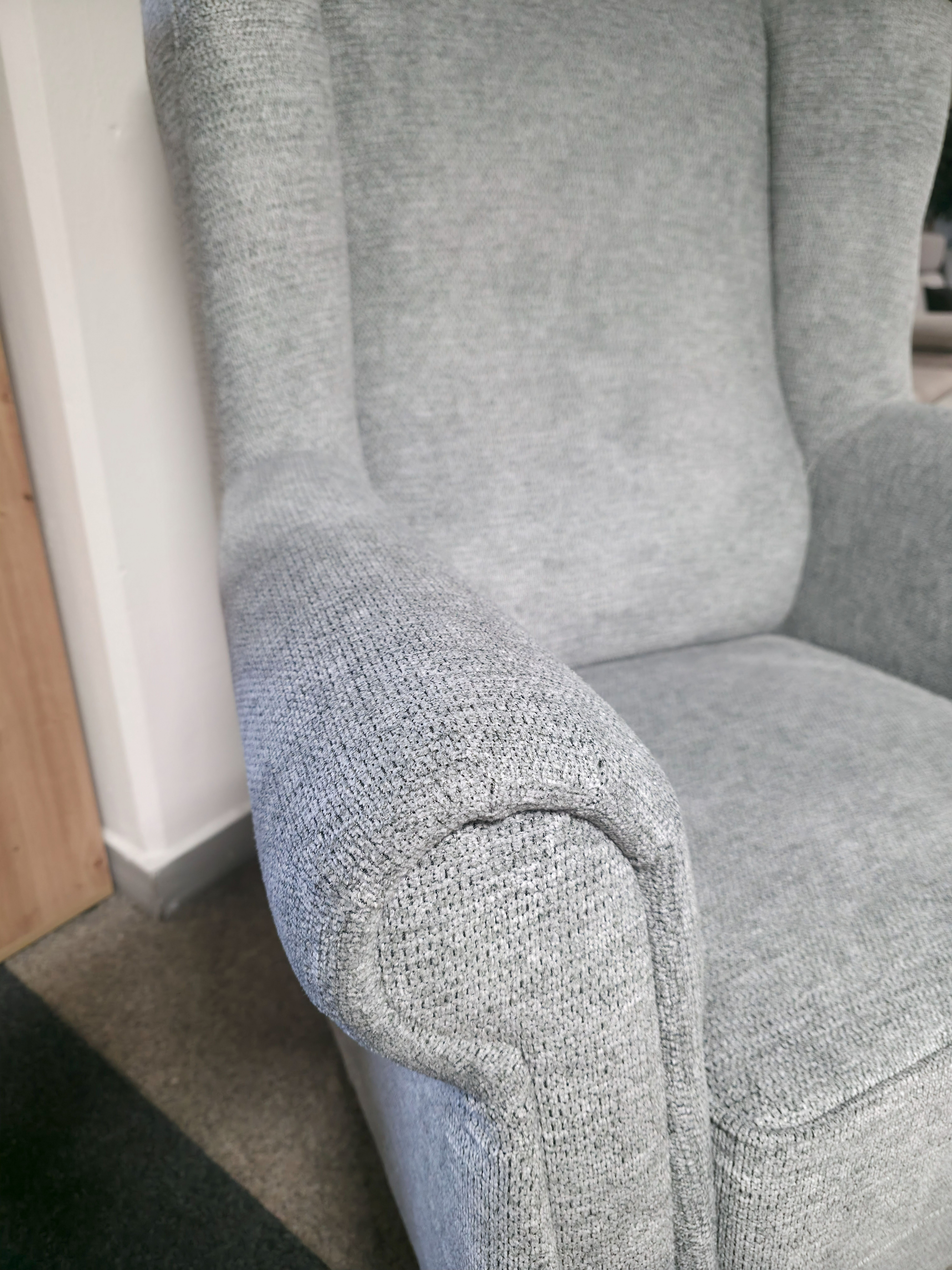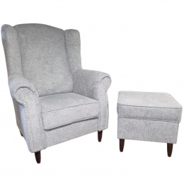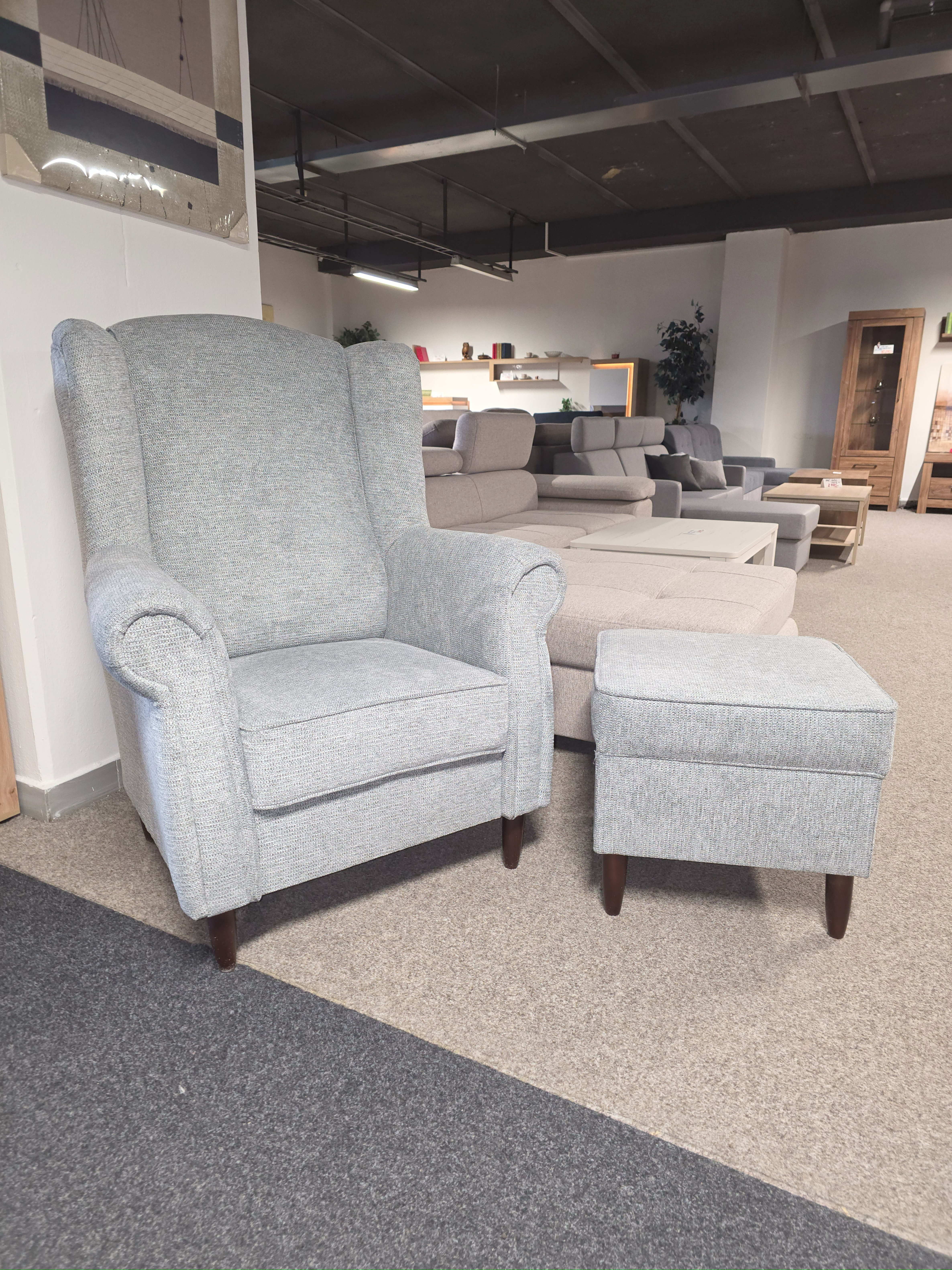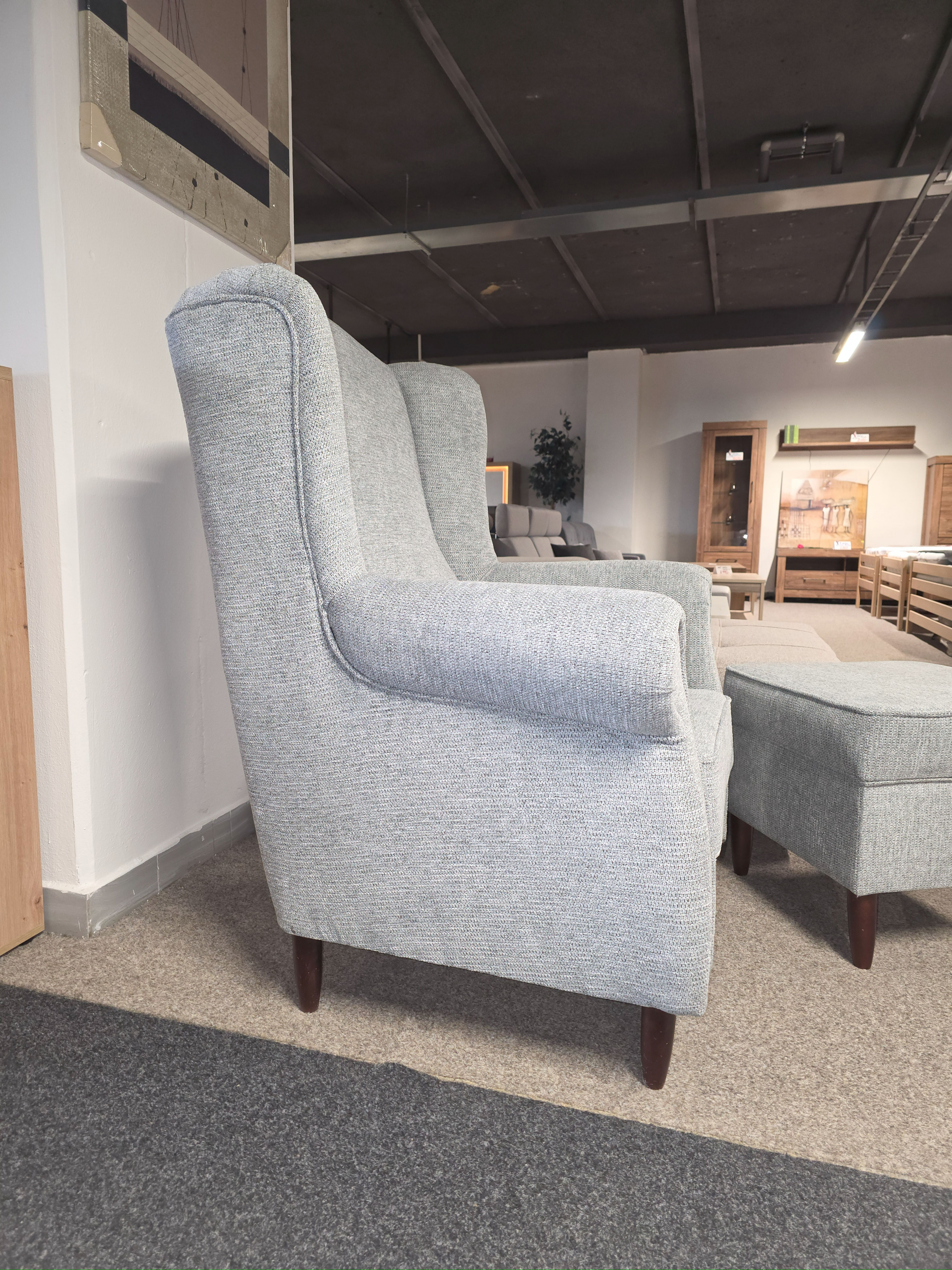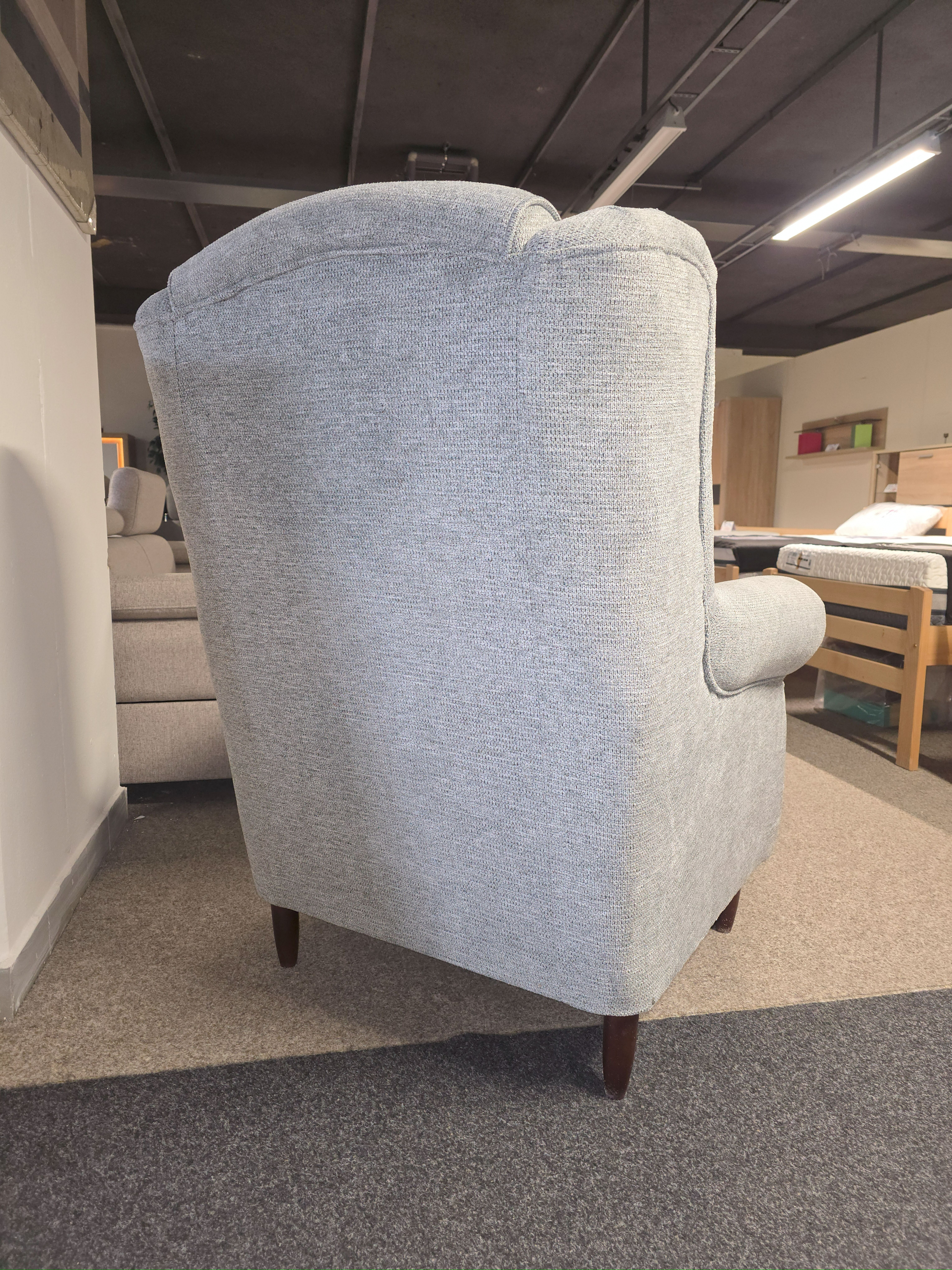Pohodlné, moderní křeslo MELISA. Vhodné do relaxačního, nebo čtecího koutku. Ušák MELISA je očalouněno látkou v šedé barvě - Aragon 90. Nožky jsou ze dřeva mořeného na barvu ořech.