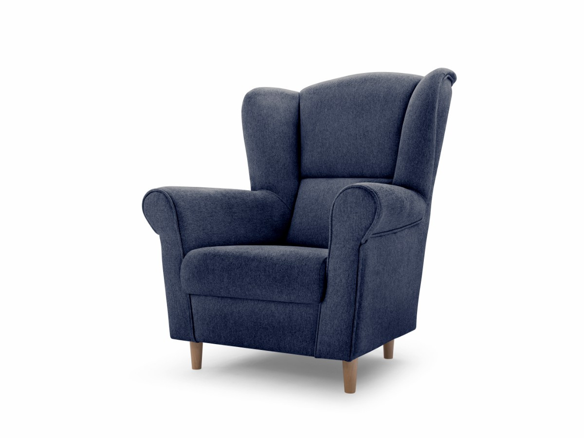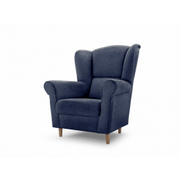 VIOLA je celočalouněné křeslo ušák do obývacího pokoje. Křeslo je čalouněno kvalitní potahovou látkou Avra 14 v modré barvě. Nožičky jsou z masivního bukového dřeva. Pohodlný sed, vlnitá pružina na sedáku.