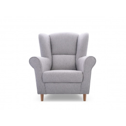VIOLA je celočalouněné křeslo ušák do obývacího pokoje. Křeslo je čalouněno kvalitní potahovou látkou Avra 16 ve světle šedé barvě. Nožičky jsou z masivního bukového dřeva. Pohodlný sed, vlnitá pružina na sedáku.