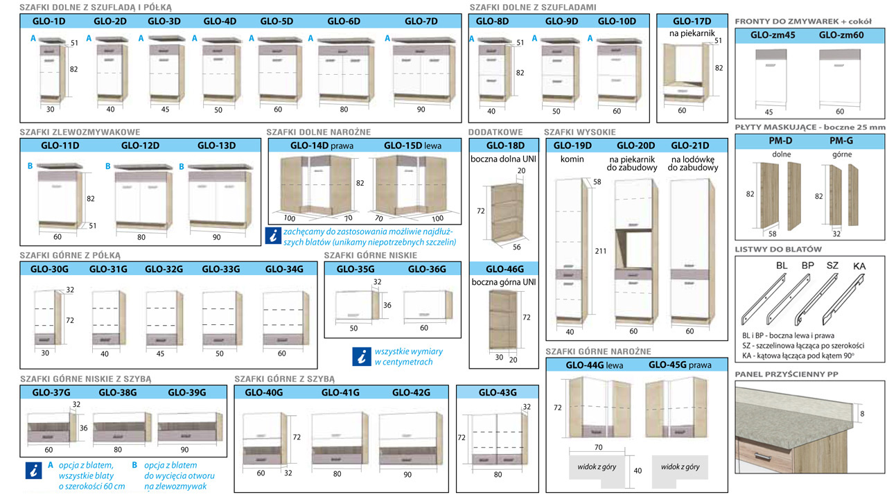 Spodní skříňky: hloubka 51 cm, výška 82 cm