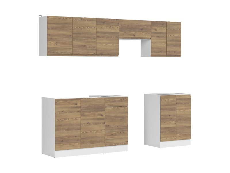 Kuchyňská linka JUNONA MODUL verze BBL 240 cm je dokonale funkční s elegantním designem. Vytvořena je z kvalitního materiálu, a to kombinací lamina a MDF v barvě bílá/modřín sibiu zlatý. Výrazným prvkem jsou integrované úchyty, které doplňují čistý a minimalistický vzhled dvířek. To zároveň zvyšuje pohodlí při manipulaci s dvířky. Koupě celé sestavy je ekonomičtější než pořízení jednotlivých dílů. Součástí sestavy jsou skříňky, bez kterých se žádná kuchyňská linka neobejde. Kuchyňská linka JUNONA je vyrobena z kvalitního lamina.