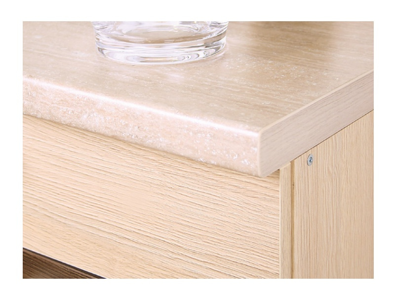 Kuchyňská linka MODENA 180 se vyznačuje kvalitním provedením a vynikající cenou. Vyrobena je z kvalitního lamina ( korpus ) a MDF desky ( dvířka ). Korpusy jsou olepeny ABS hranami 0,5 mm, dvířka mají zaoblené hrany a dekor dvířek tvoří kvalitní fólie v moderním lesklém provedení a jsou doplněna kovovými úchytkami. Dodávána je i s pracovní deskou v barvě Travertyn světlý o výšce 38 mm, která je dodávána ve dvou kusech 60 cm a 60 cm . Dvířka jsou v barvě bílý lesk a doplněna pruhem grafit mat. Korpus je v odstínu rijeka světlá.