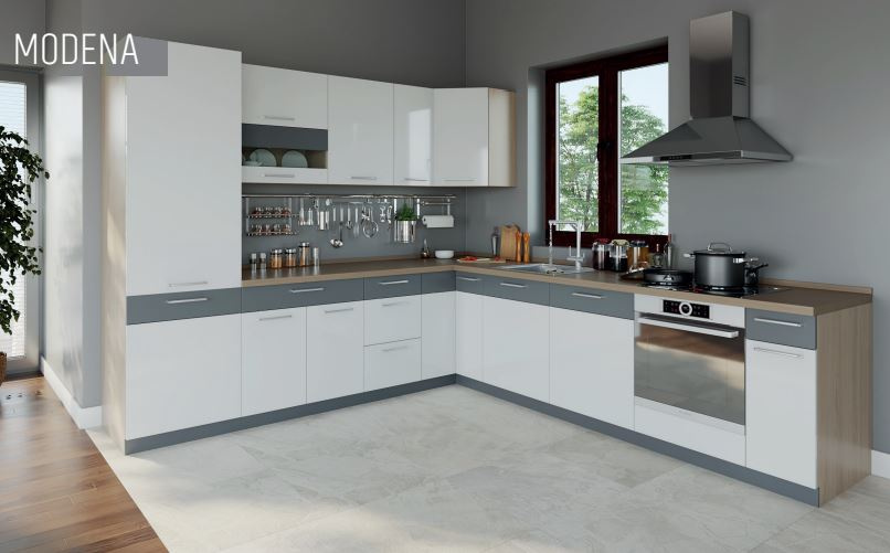 Kuchyňskou linku MODENA si můžete doplnit o další skříňky, popř. si ji sestavit podle svých rozměrů a požadavků - na dotaz u prodejce.