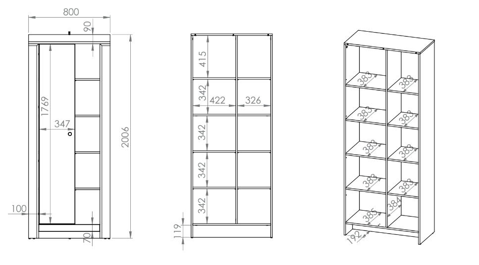 Rozměr: v. 201 cm / š. 80 cm / hl. 42 cm