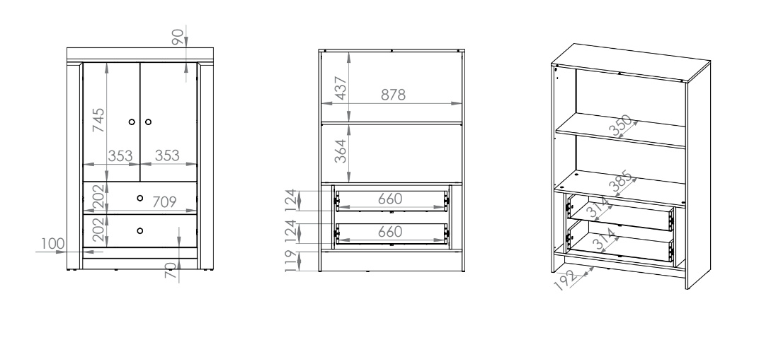 LAHTI 08 komoda - kombinovaná s dvoudvířky a jednou policí a dvěma šuplíky