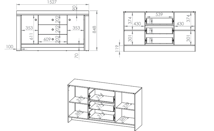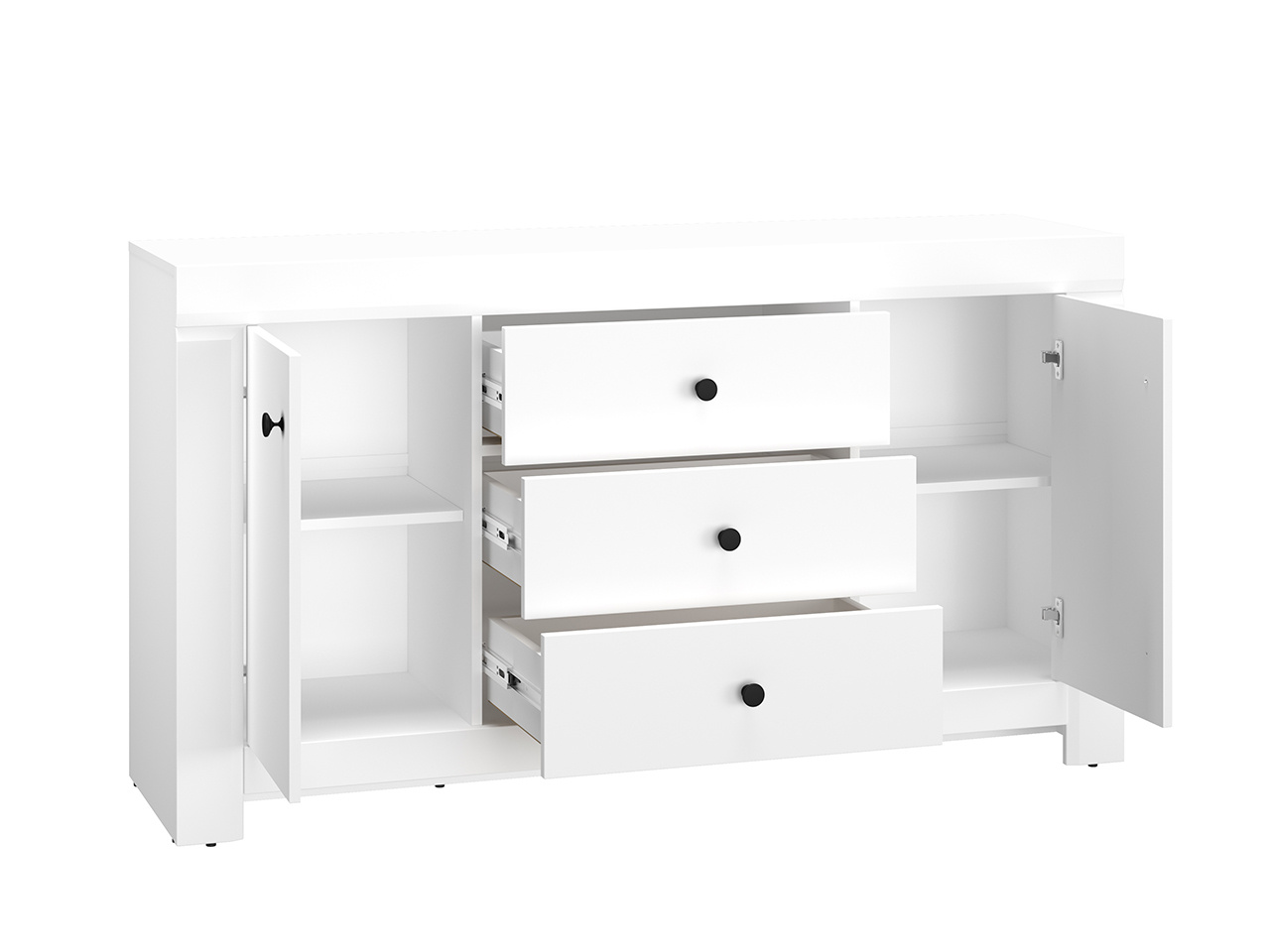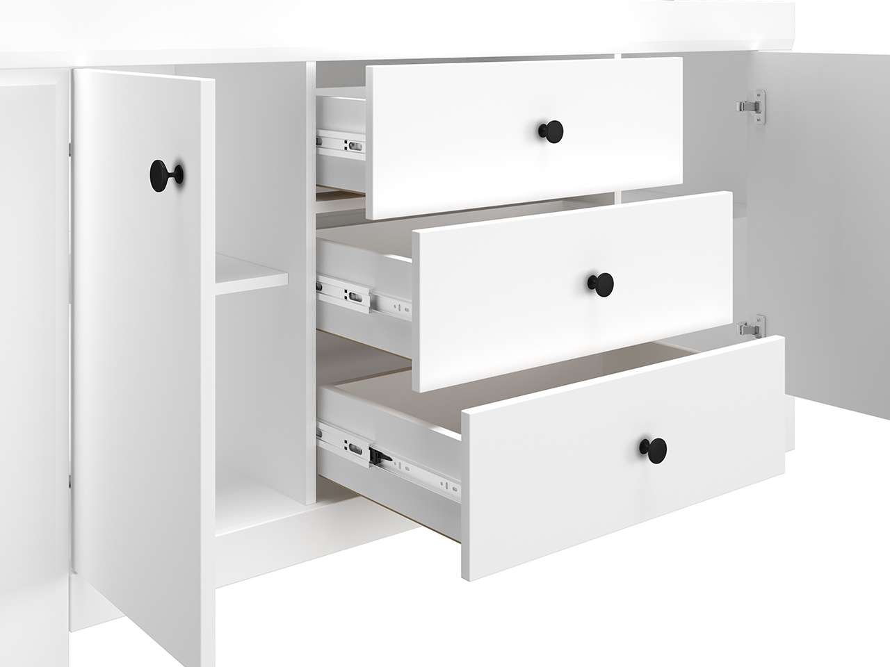 LAHTI 09 komoda - kombinovaná s plnými dvířky po stranách, za kterými se skrývá po jedné polici a třemi šuplíky