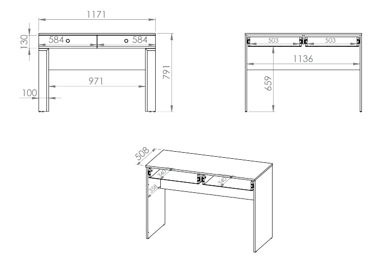 LAHTI 12 stoleček - s dvěma šuplíky pod stolovou deskou, vhodný jako pracovní stoleček pod noťas nebo spolu se zrcadlem LAHTI 13 jako toaletní stolek do ložnice