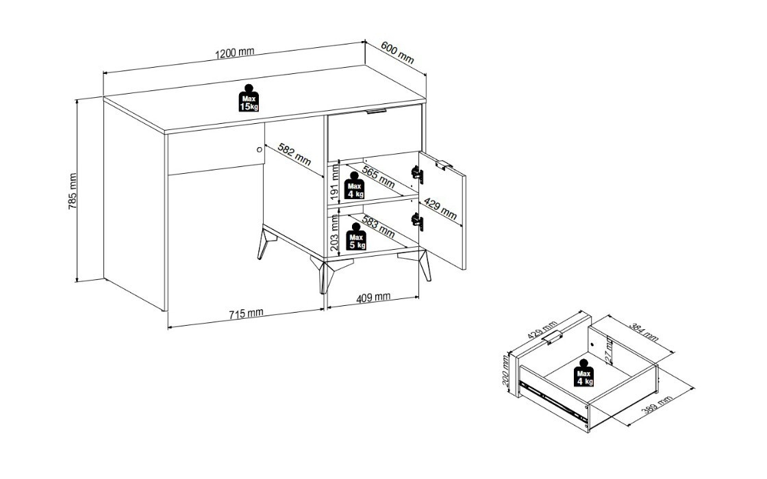Psací stůl BIU1D1S ze systému LAMEA - jednodvířkový s poličkou a šuplíkem