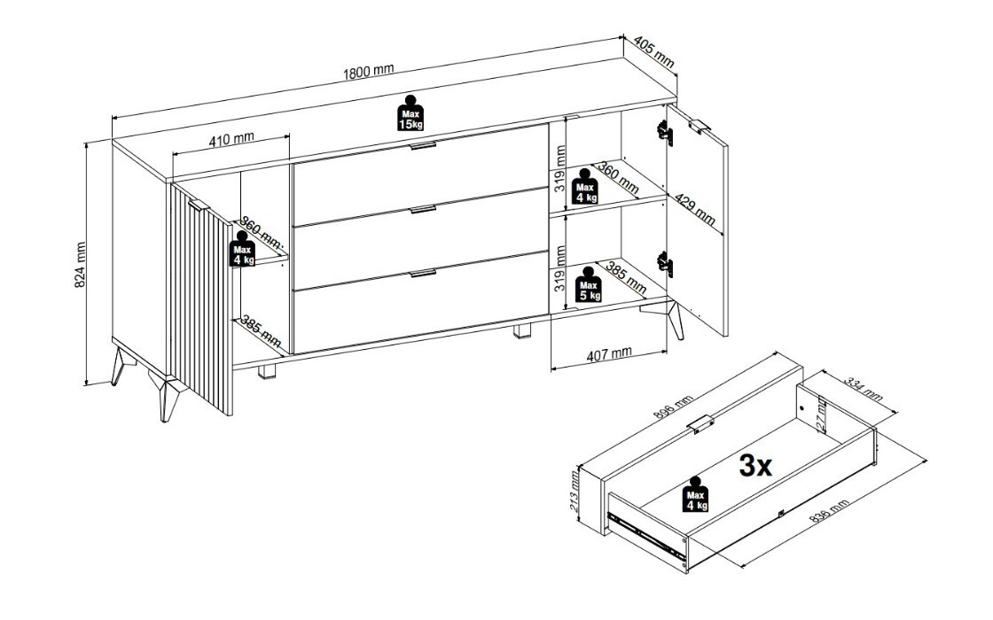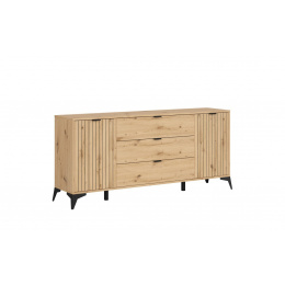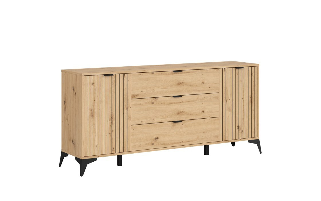 Komoda KOM2D3S/180 ze systému LAMEA - kombinovaná komoda s dvířky po stranách za kterými je po jedné polici a třemi šuplíky uprostřed