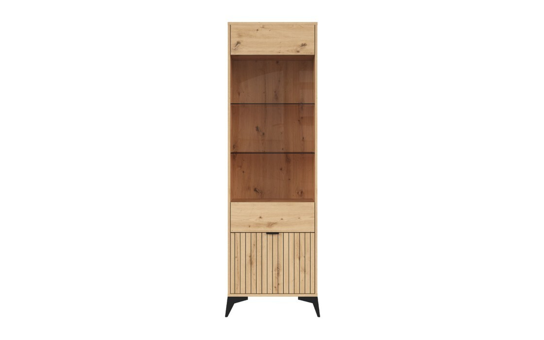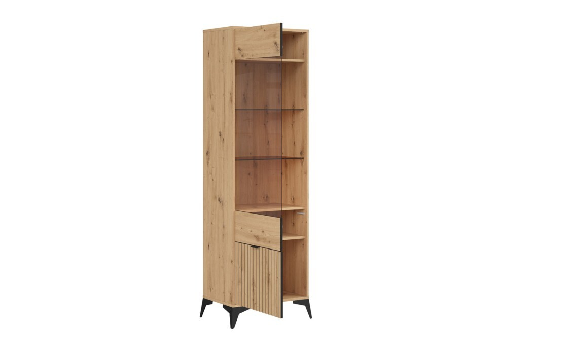 Systém LAMEA se vyrábí z kvalitního lamina v atraktivním dekoru dub Artisan. Eleganci nábytku LAMEA zdůrazňují dvířka s efektním velmi módním rýhováním. Jednotlivé skříňky sektoru jsou postaveny na vysokých nožičkách. K dispozici máte třináct jednotlivých skřínek, které můžete libovolně skládat podle vlastních představ a vytvořit tak originální interiér obývacího pokoje. K proskleným vitrínám máte možnost doobjednání LED osvětlení.