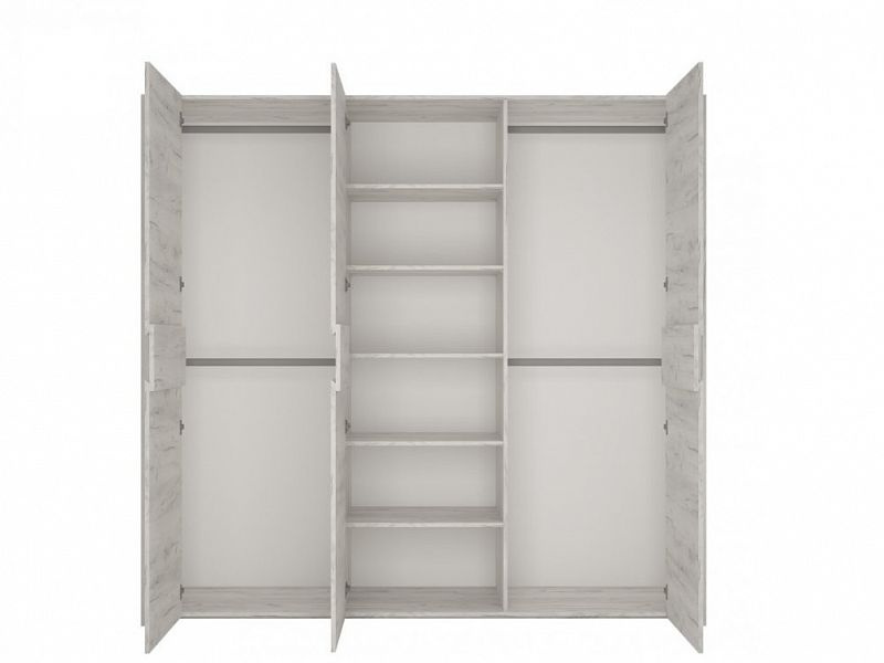 Kombinovaná šatní skříň za systému LANA - třídveřová, uprostřed police, po stranách šatní tyče