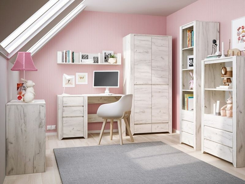 Systém LANA, jednoduchý, funkční v atraktivním barevném provedení. Umožní Vám sestavit ložnici podle vlastních představ a potřeb. Jednotlivé prvky sektoru LANA můžete libovolně kombinovat. Nábytek je vyrobený z kvalitního lamina v dekoru bělený dub. Je odolný proti poškrábání, vlhkosti a vysokým teplotám. Dvířka a přední plochy zásuvek mají tvarovanou horní hranu, která nahrazuje úchytky.