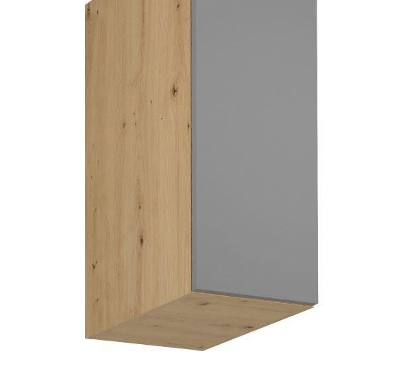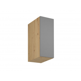 Horní skříňka G30G P/L kuchyně LANGEN - jedno dvířková s jednou policí. Dvířka jsou stranově zaměnitelná, můžete je namontovat s pravým nebo levým otevíráním. Korpus lamino v dekoru Dub Artisan, dvířka MDF v dekoru Beige.