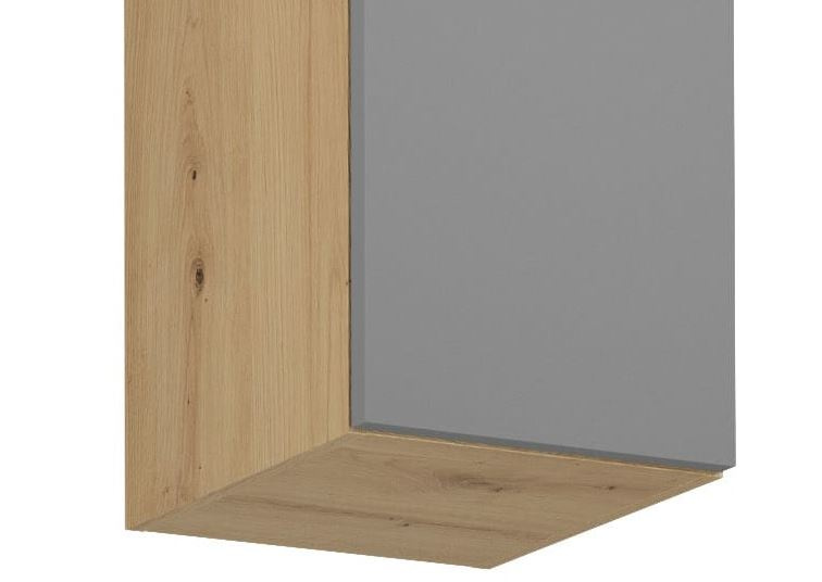 Horní skříňka G30P/L kuchyně LANGEN - jedno dvířková s jednou policí. Dvířka jsou stranově zaměnitelná, můžete je namontovat s pravým nebo levým otevíráním. Korpus lamino v dekoru Dub Artisan, dvířka MDF v dekoru Beige.