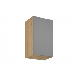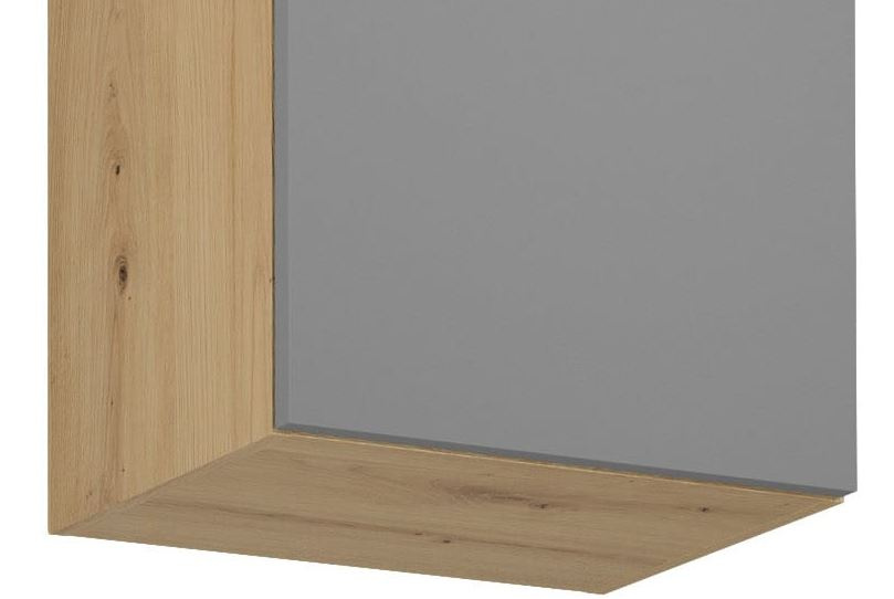 Horní skříňka G45P/L kuchyně LANGEN - jedno dvířková s jednou policí. Dvířka jsou stranově zaměnitelná, můžete je namontovat s pravým nebo levým otevíráním. Korpus lamino v dekoru Dub Artisan, dvířka MDF v dekoru Beige.