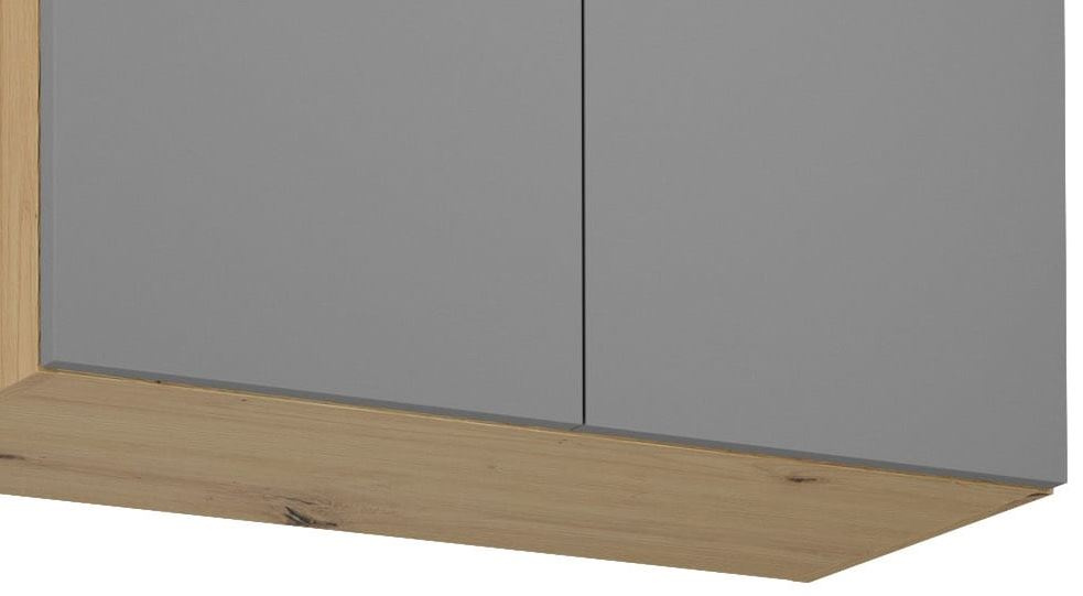 Horní skříňka G80G kuchyně LANGEN - dvou dvířková s jednou policí. Korpus lamino v dekoru Dub Artisan, dvířka MDF v dekoru Beige.